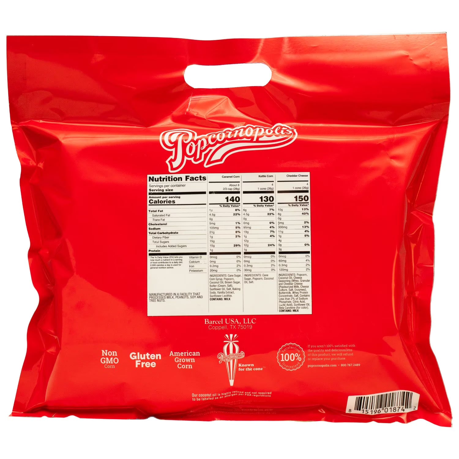 🍿 Includes 12 mini cones in Kettle Corn, Caramel Corn, and Cheddar Cheese flavors