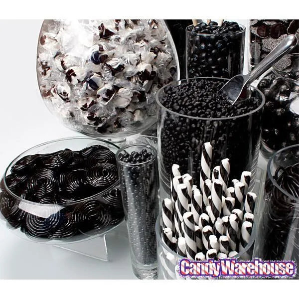 Bag contains 5 pounds of Haribo Black Licorice Wheels Candy.