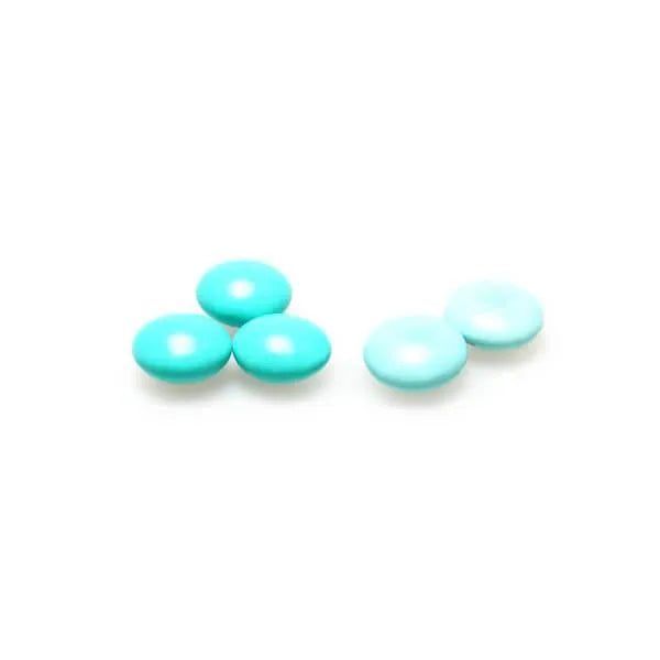 Bag contains 5 pounds of Pastel Blue Milk Chocolate Gems Candy.