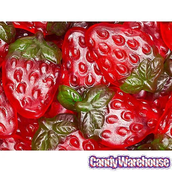 Bag contains 5 pounds of Haribo Red Gummi Strawberries Candy.