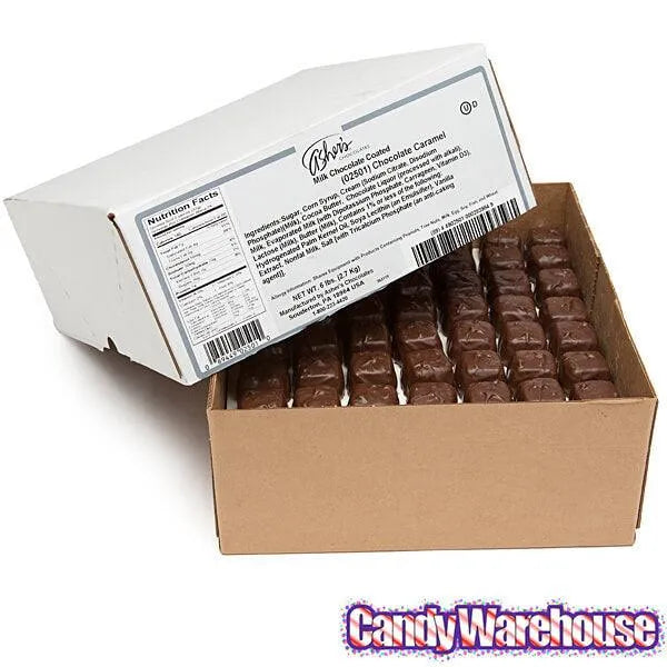 Box contains 6 pounds of Milk Chocolate Covered Chocolate Caramels Candy... that's about 180 pieces.