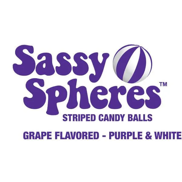 Expertly curving outward from swirly points on either side, lines that wrap across each individually wrapped purple Sassy Sphere make these delightful sweets look like striped balloons inflated to full capacity like the ones you see at the circus and county fair. Plucky and adorable, these vibrant purple and white confections taste just as good as they look. Bulbous and bright, each ball is full of fruity grape flavor that promises to perk up your taste buds and refresh your palate. Fill up a candy bowl with these jolly spheres for weddings, holidays, or any occasion, and prepare to impress your guests!