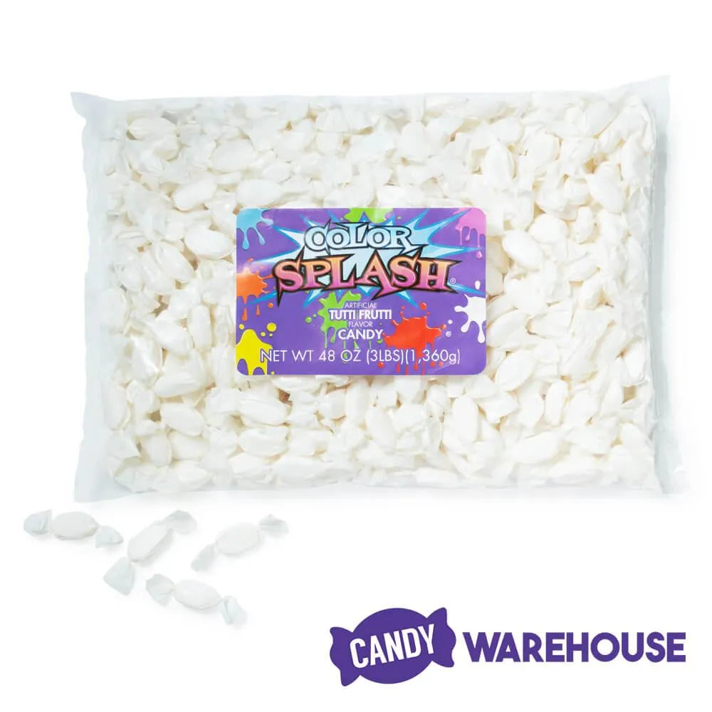 Bag contains 3 pounds of Color Splash White Tutti Frutti Hard Candy, that's about 360 pieces.