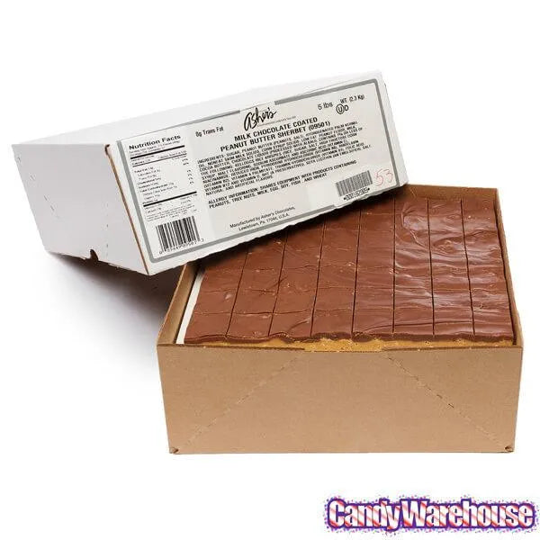 Box contains 5 pounds of Peanut Butter Sherbet Chocolates Candy.