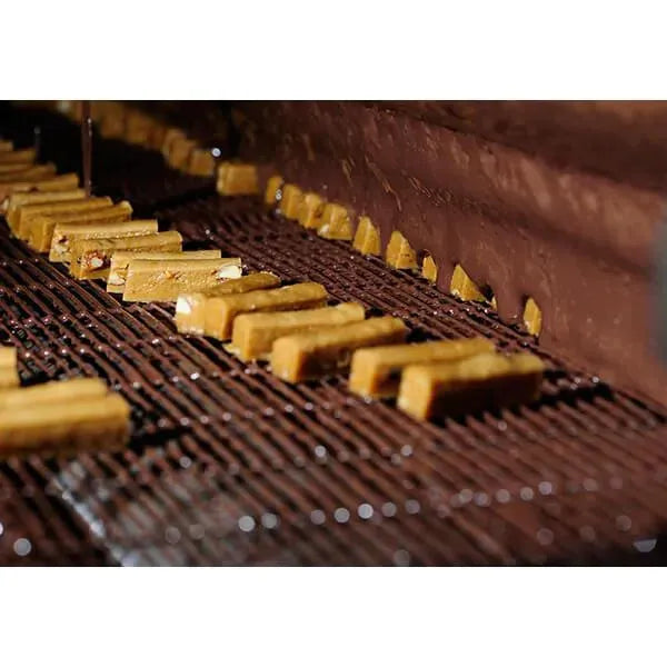 They start with a buttercrunch center made with real vanilla and butter created especially for Brown & Haley. Since they don't add salt or water to their buttercrunch, the texture is crunchy, but with a soft bite.