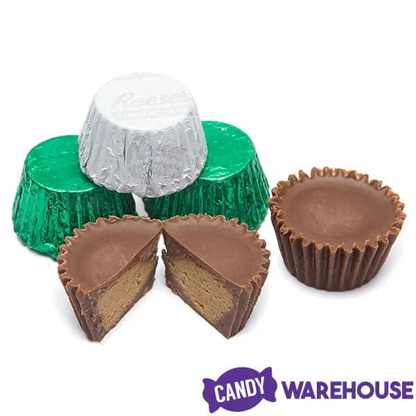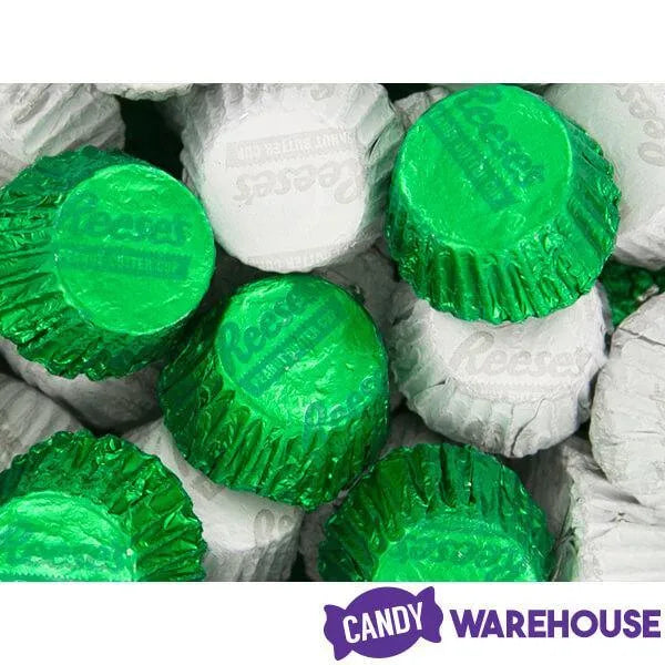 Box contains 400 pieces of Green Foiled and White Foiled Reese's Peanut Butter Cups Candy packed in two bags, each with a net weight of 66.7 ounces.