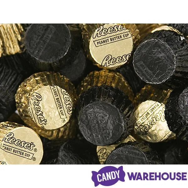 Box contains 400 pieces of Black Foiled and Gold Foiled Reese's Peanut Butter Cups Candy packed in two bags, each with a net weight of 66.7 ounces.