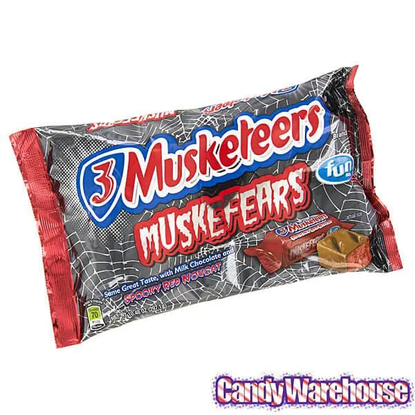 A spooky spin on the classic 3 Musketeers candy bar... the fluffy center of these snack size bars feature a blood red center.