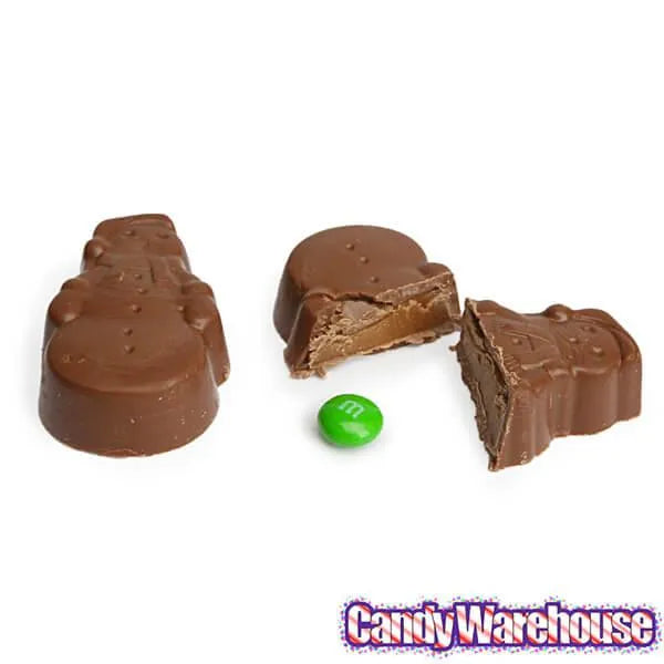 So next time you’re struck with the urge to take a giant bite out of a snowman, we recommend a tastier alternative… in the form of chocolate coated caramel! Tear into the festive wrapper to find a delightfully detailed snowman residing inside. But rather than setting him up in the front yard with a corncob pipe and a button nose, we recommend taking a giant bite out of this milk chocolate treat and allowing your taste buds to bathe in the deluge of caramel that awaits -- much better than all that cold ice, right?