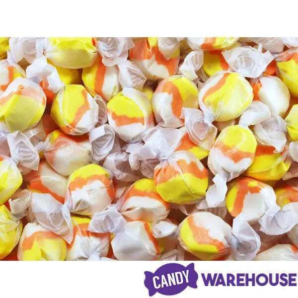 Yummy salt water taffy with a fun candy corn design and flavor! These delicious and chewy candy treats will entangle your taste buds in sweet delight. And because this is a whipped taffy, it won't stick to your teeth or dental work.... no trips to the dentist to replace fillings or crowns!