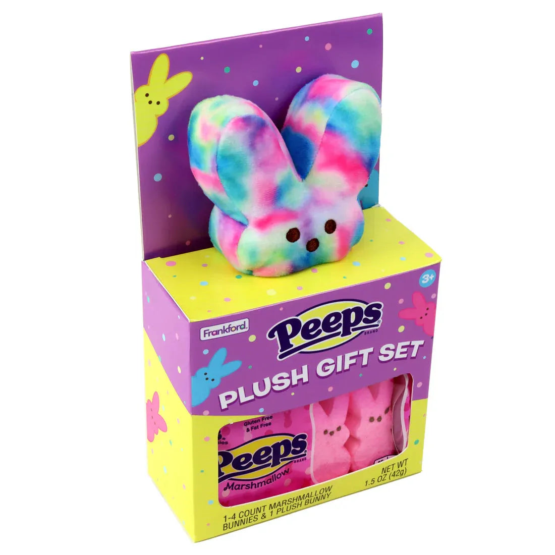 The Easter Bunny brought an extra-sweet surprise this year with the PEEPS Tie Dye Plush Bunny Gift Set! This adorable set includes a soft and cuddly tie-dye plush bunny alongside a 4-count pack of classic pink PEEPS marshmallow candy, making it the perfect Easter basket addition. Whether you're gifting it to a little one or adding it to your own collection, this set brings a fun and festive touch to Easter celebrations. Recommended for ages 3+, this 1.5 oz bundle of cuteness is sure to bring smiles all around!