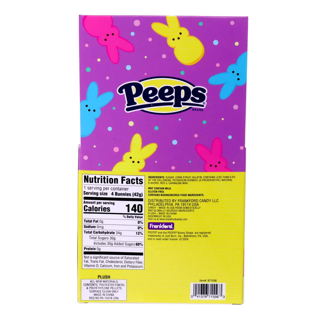 Case contains 6 Peeps Plush Bunny Tie Dye Gift Sets, each with a net weight of 1.5 ounces.