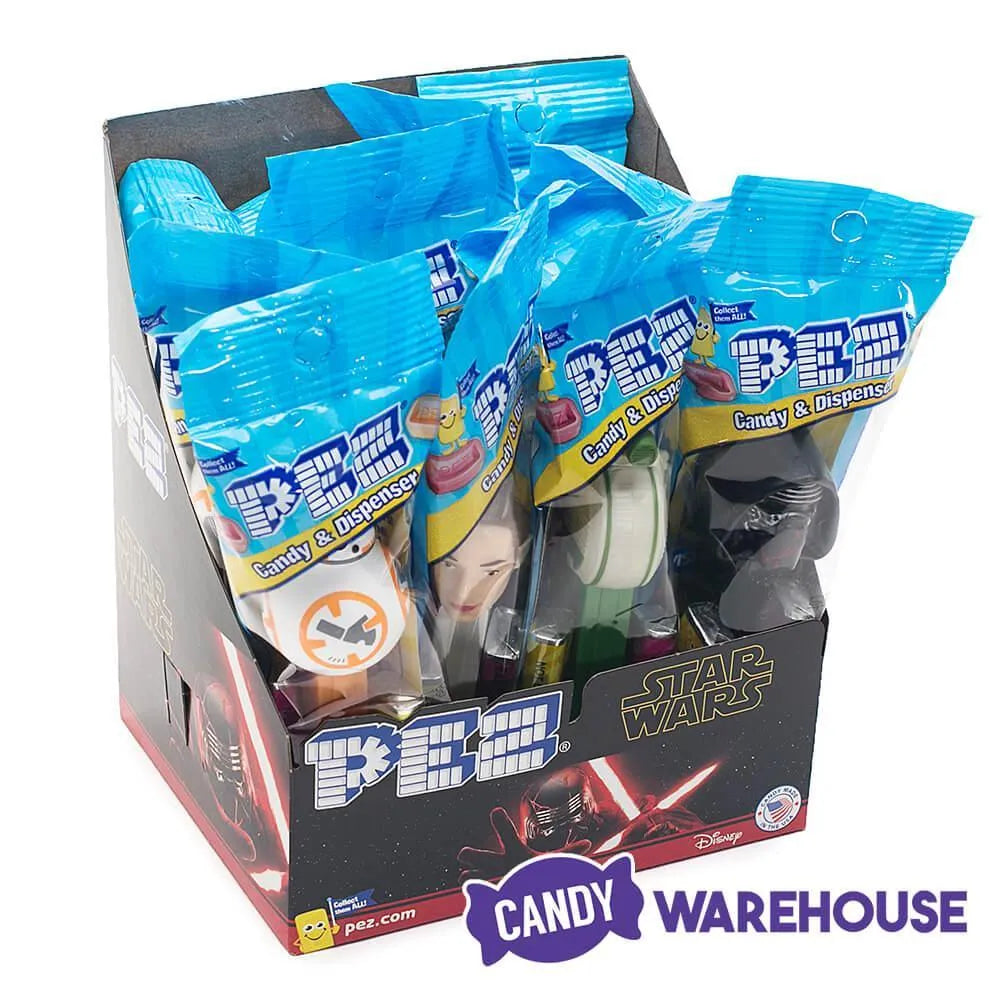 Display box includes 12 Star Wars PEZ Packs, each containing a dispenser and 2 candy cartridges.