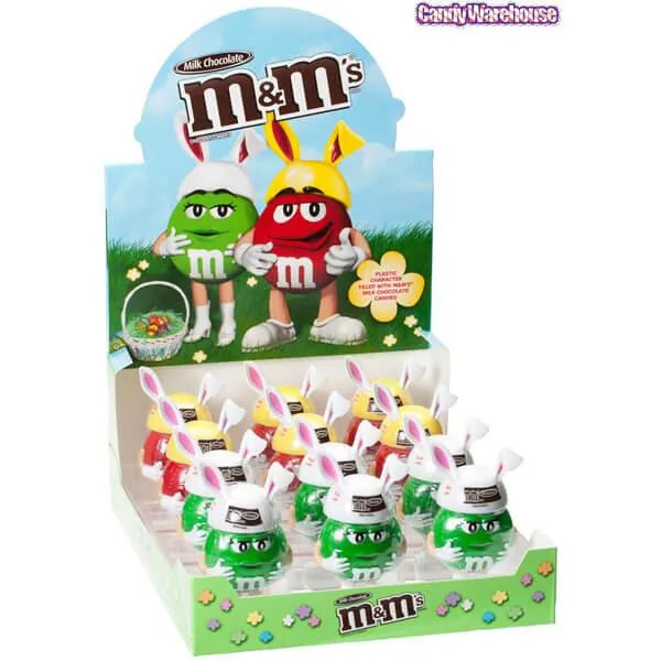 Cute Red and Green M&M's plastic characters featuring Easter bunny designs are filled with delicious milk chocolate M&M's candy! Simply twist the figurine's bunny ears helmet to unlock the chocolatey goodness.