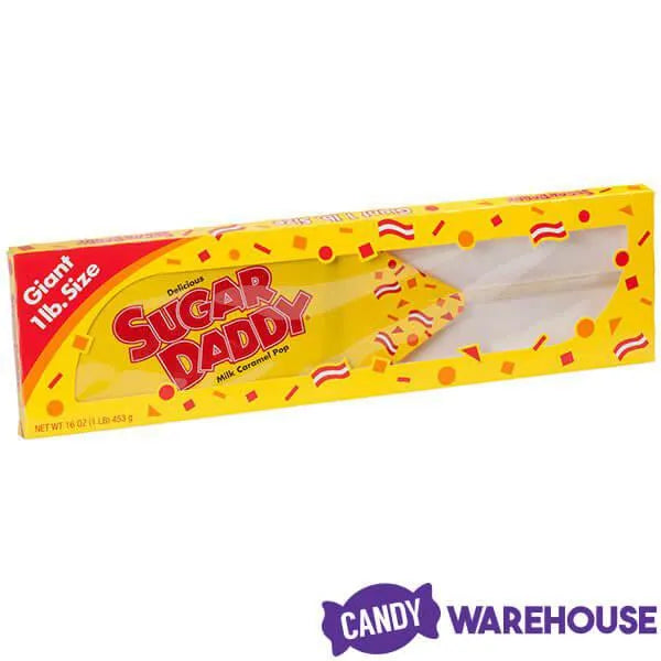 The grand daddy of all Sugar Daddies! Made from 100% pure slow cooked caramel, this giant Sugar Daddy lollipop weighs in at a massive 1 pound and comes packaged in a full length box, making it easy to gift wrap.