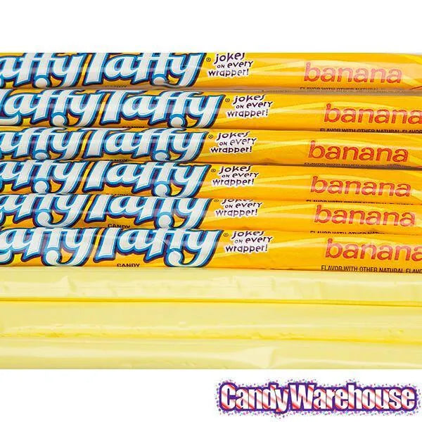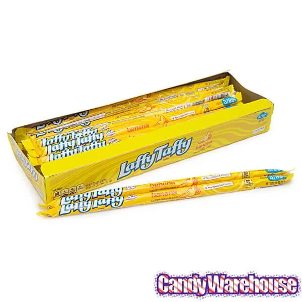 Display box contains 24 packs of Banana Laffy Taffy Ropes Candy.