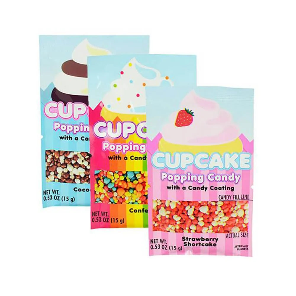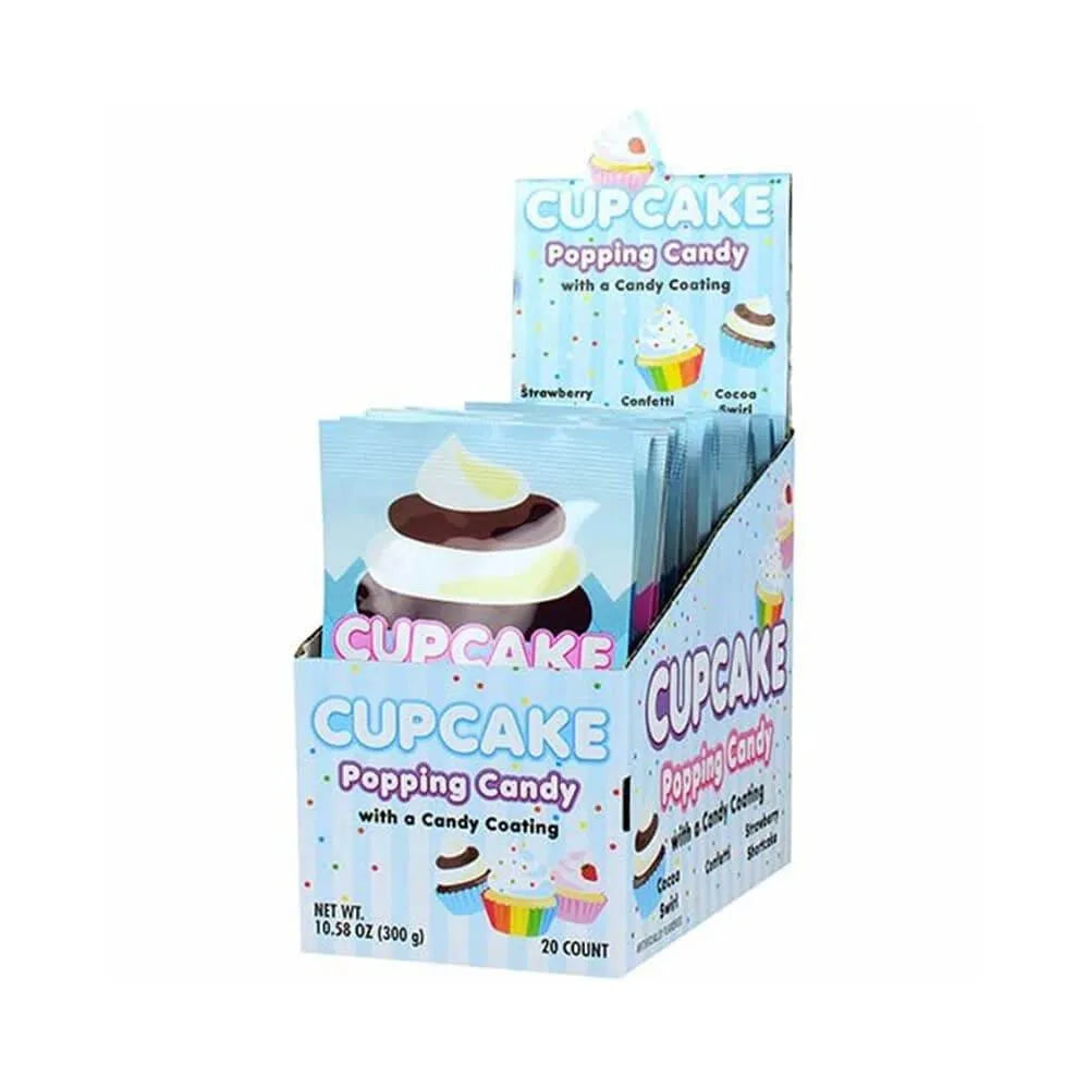 Display box contains 20 Cupcake Coated Popping Candy Packs, each with a net weight of .53 ounces.