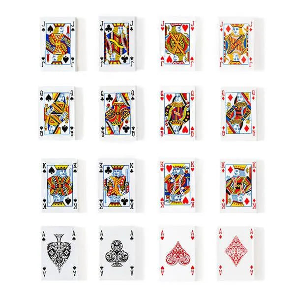 A royal flush of flavor is packed into every deck of these chocolate playing cards! Delicious milk chocolate is wrapped in white foil, and then over-wrapped with playing card designs including jacks, queens, kings, and aces. Whether you're playing Crazy Eights and Go Fish with the kids, or Black Jack and Poker at a casino game night with co-workers, or Gin Rummy and Canasta with the grand parents, all ages will enjoy having a candy bowl full of these fun chocolates to snack on between shuffles.