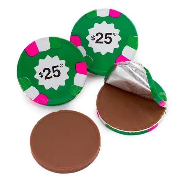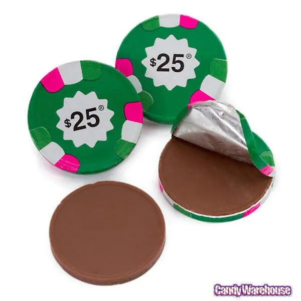 Madelaine Foiled Milk Chocolate Poker Chips - $25 Green: 5LB Bag