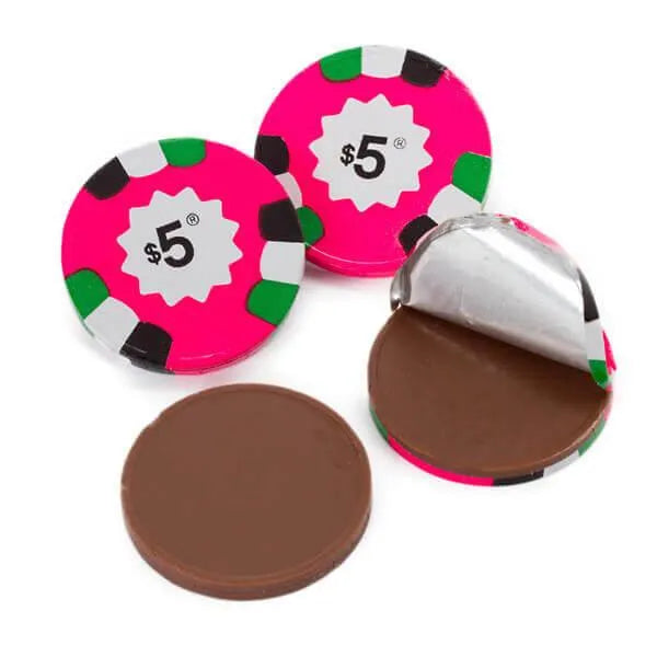 Madelaine Foiled Milk Chocolate Poker Chips - $5 Pink: 5LB Bag
