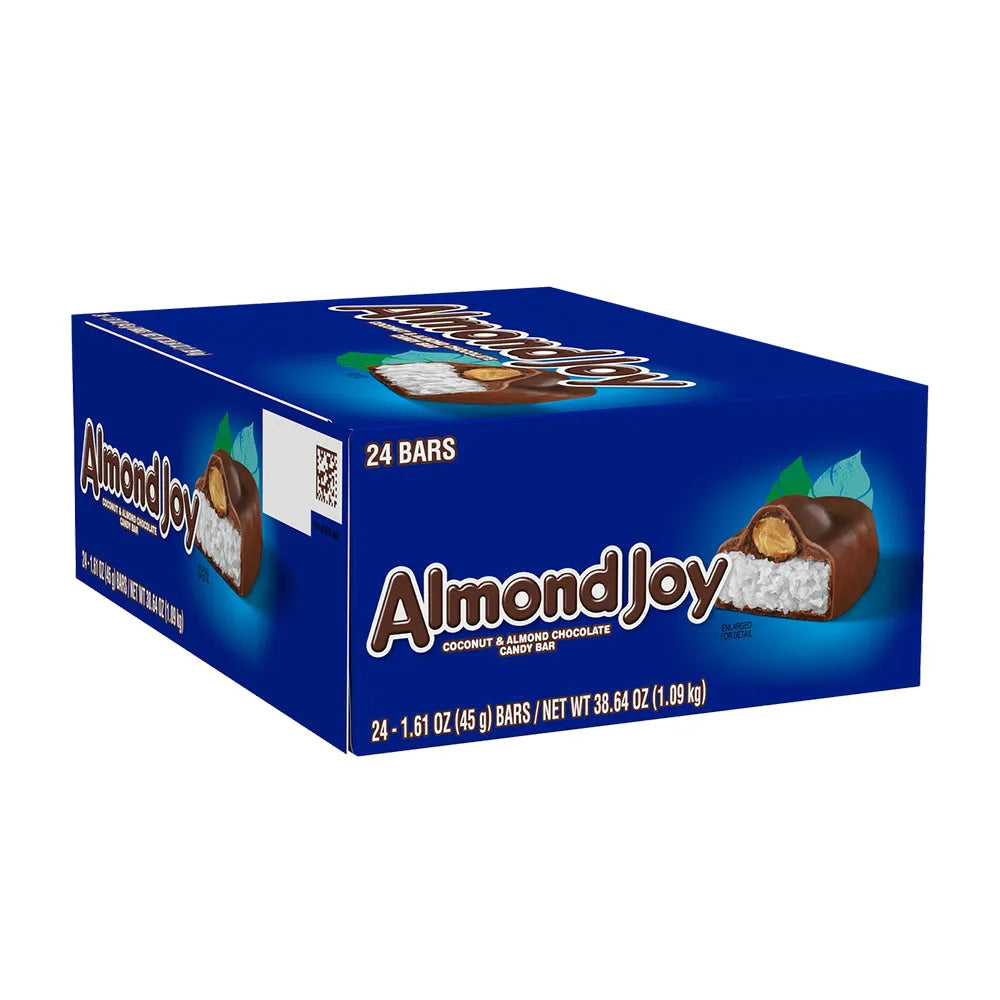 Satisfy your sweet tooth with the tropical taste of Almond Joy Candy Bars in this convenient 24-piece box. Each bar features a delicious blend of creamy coconut topped with whole roasted almonds, all wrapped in a smooth layer of rich milk chocolate. Whether you're stocking the office snack drawer, filling candy bowls, or just want a personal stash of your favorite treat, this bulk box is the perfect choice. Great for parties, gifting, or everyday indulgence, Almond Joy delivers a satisfying bite of sweet, nutty bliss. Get your 24-count box today at Candy Warehouse and keep the joy coming!