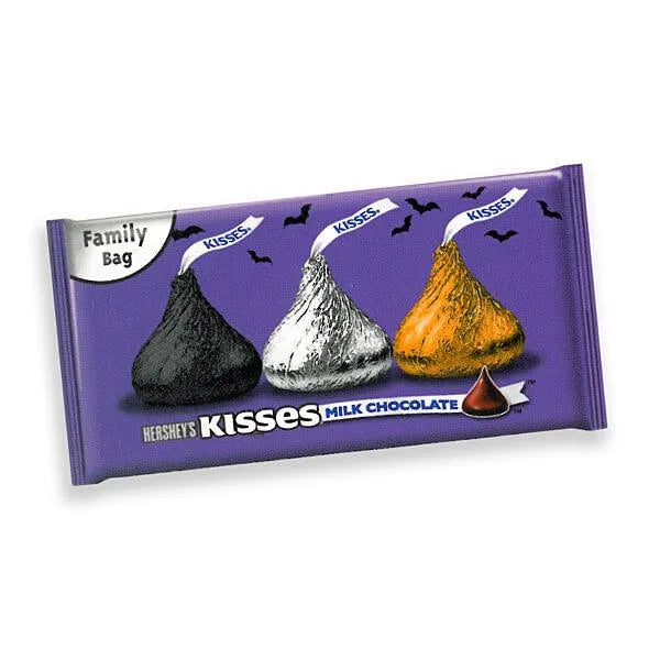 The tradition of wearing costumes on Halloween comes from the Celtic practice of men donning white costumes and black masks to appease evil spirits. Decked out for this candy-centered holiday in orange, black and silver foils, the Halloween Kisses in this candy bag double as festive decor when you display them in a candy dish!