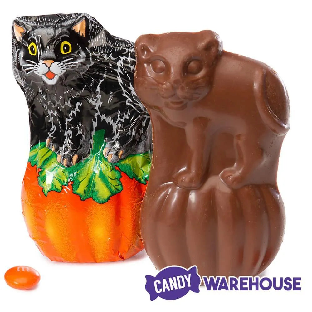 Looking for a purrrrr-fectly delightful treat this Halloween? Munch on a creamy, chocolaty kitty cat! Wrapped in foil design of a scary black cat atop an orange pumpkin, these solid milk chocolates are great goodies for Halloween parties and events!