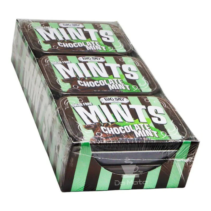 Box contains 6 Big Sky Sugar Free Chocolate Mint Tins, each with a net weight of 1.76 ounces.