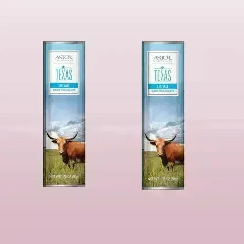 Experience the rich, deep flavors of the Texas Longhorn Dark & Salted Chocolate Bar by Astor Chocolate. This handcrafted treat combines smooth dark chocolate with a hint of sea salt for a perfectly balanced bite. Featuring the iconic Longhorn image, this bar captures the essence of Texas pride while delivering a bold and indulgent taste. Whether you're a dark chocolate lover or gifting someone a taste of Texas, this bar is a satisfying way to celebrate the Lone Star State.