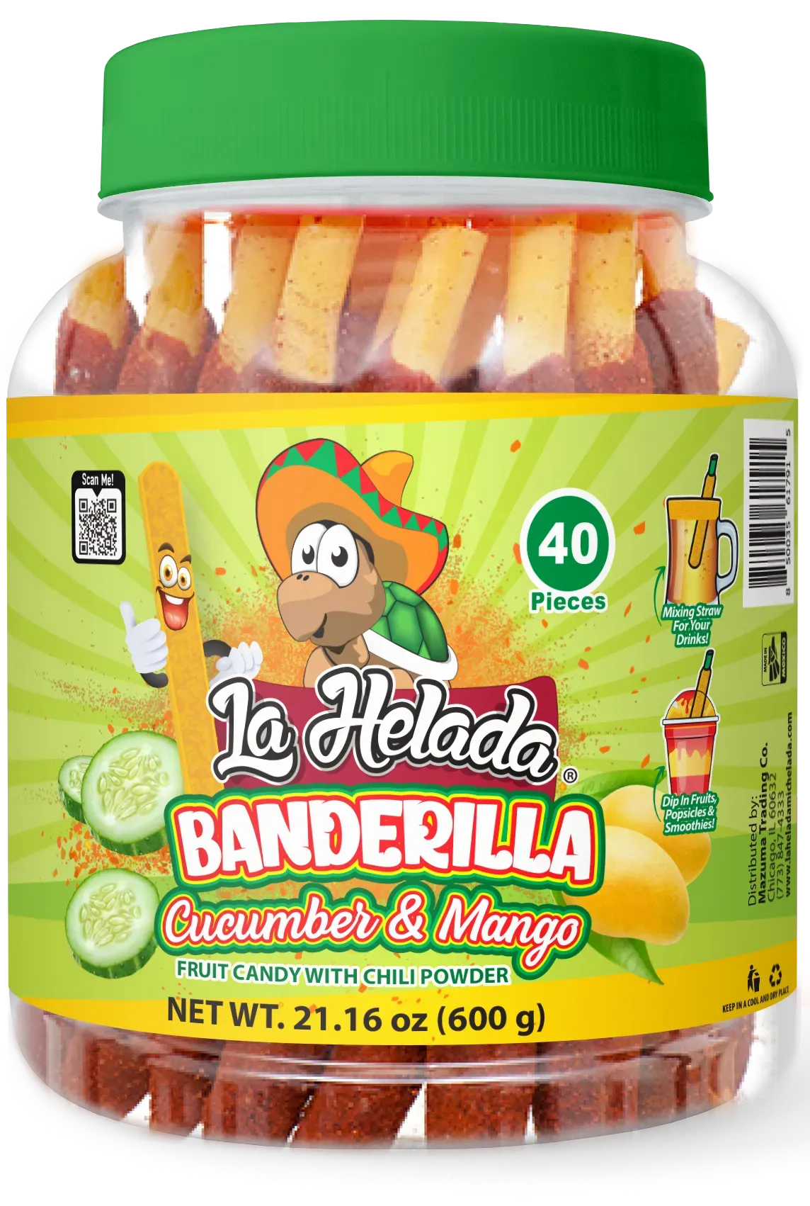 La Helada Banderilla Cucumber & Mango Candy Straws: 40-Piece Jar