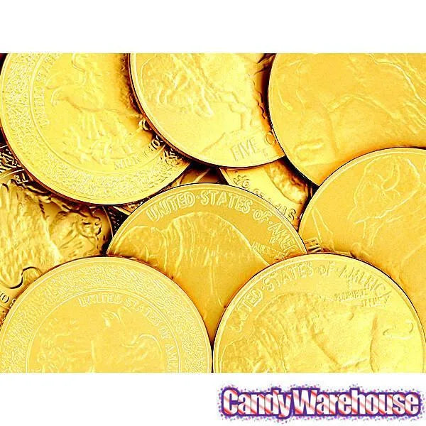 A giant mother lode of 3-inch diameter golden milk chocolate coins!