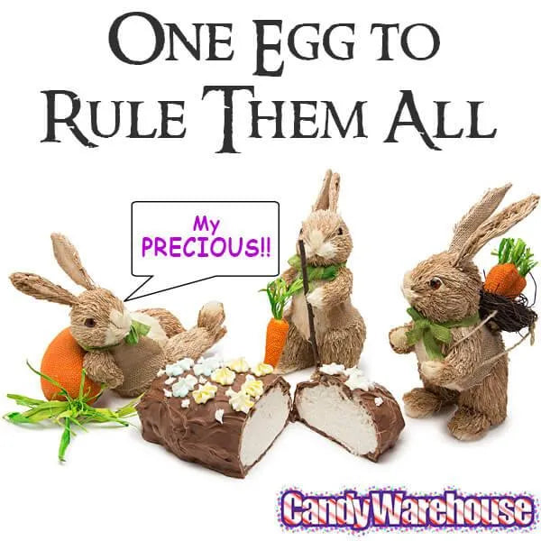 What kind of chicken lays a 5-pound coconut cream egg? A big one. And it probably has to be made of pure milk chocolate too, with a delicious coconut cream center, since that’s the kind of egg this is. Yes, the chicken who bore this gargantuan Easter delicacy could probably knock the Easter bunny flat on his rump, and that’s appropriate since the mouthwatering egg itself puts all other Easter eggs to shame. Makes a perfect centerpiece for an Easter dinner spread or candy buffet.
