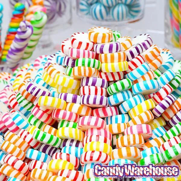 Bag contains 5 pounds of wrapped Sassy Starlights Assorted Fruit Starlight Candy.
