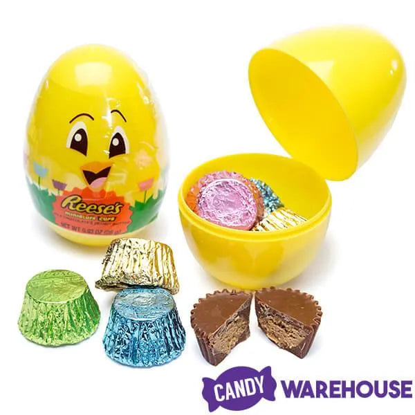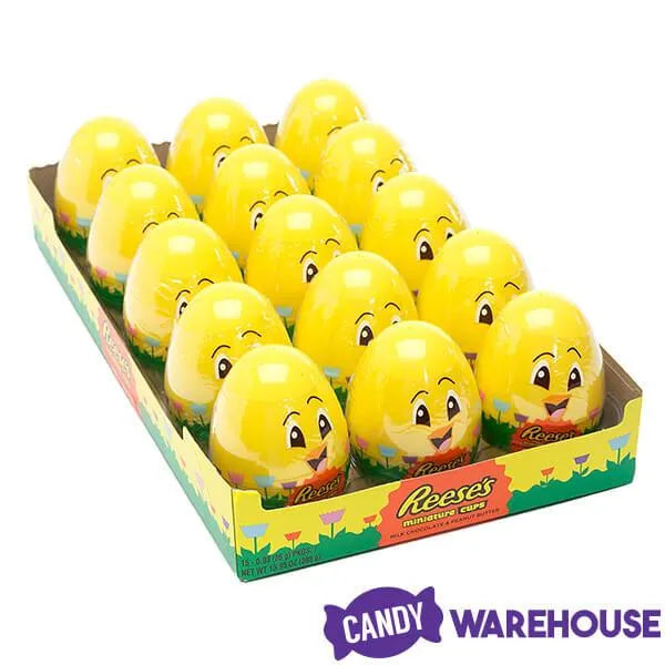 Display box contains 15 Plastic Chicks, each filled with Reese's Peanut Butter Cups Miniatures Candy.