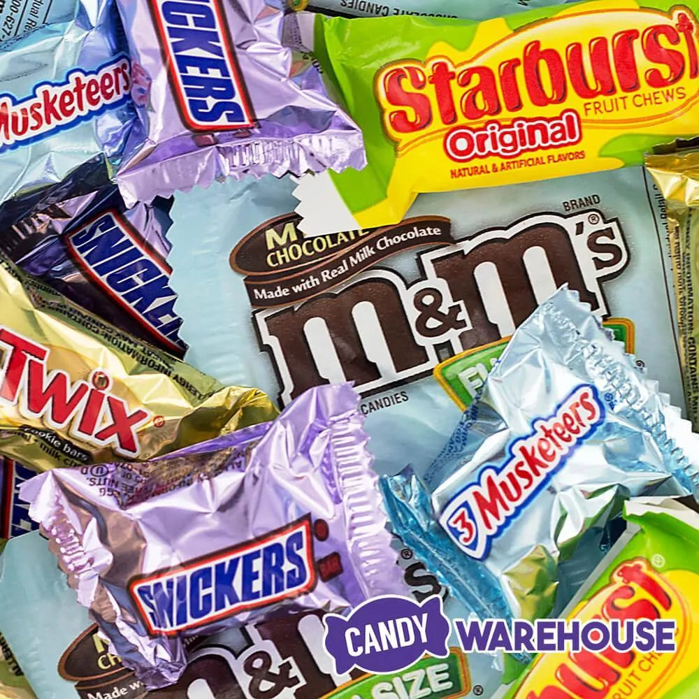 Bag contains 100 pieces of Assorted M&M-Mars Easter Mini Candy Packs and Bars.