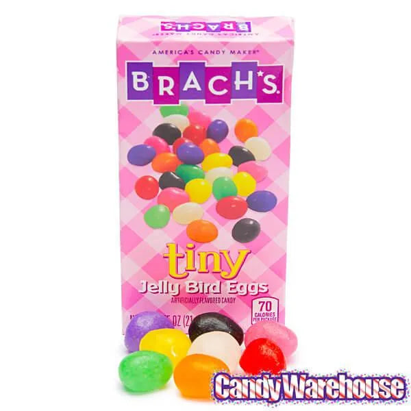 Box contains 120 packs of Brach's Tiny Jelly Bird Eggs Jelly Bean Candy, each with a net weight of 0.75 ounces.