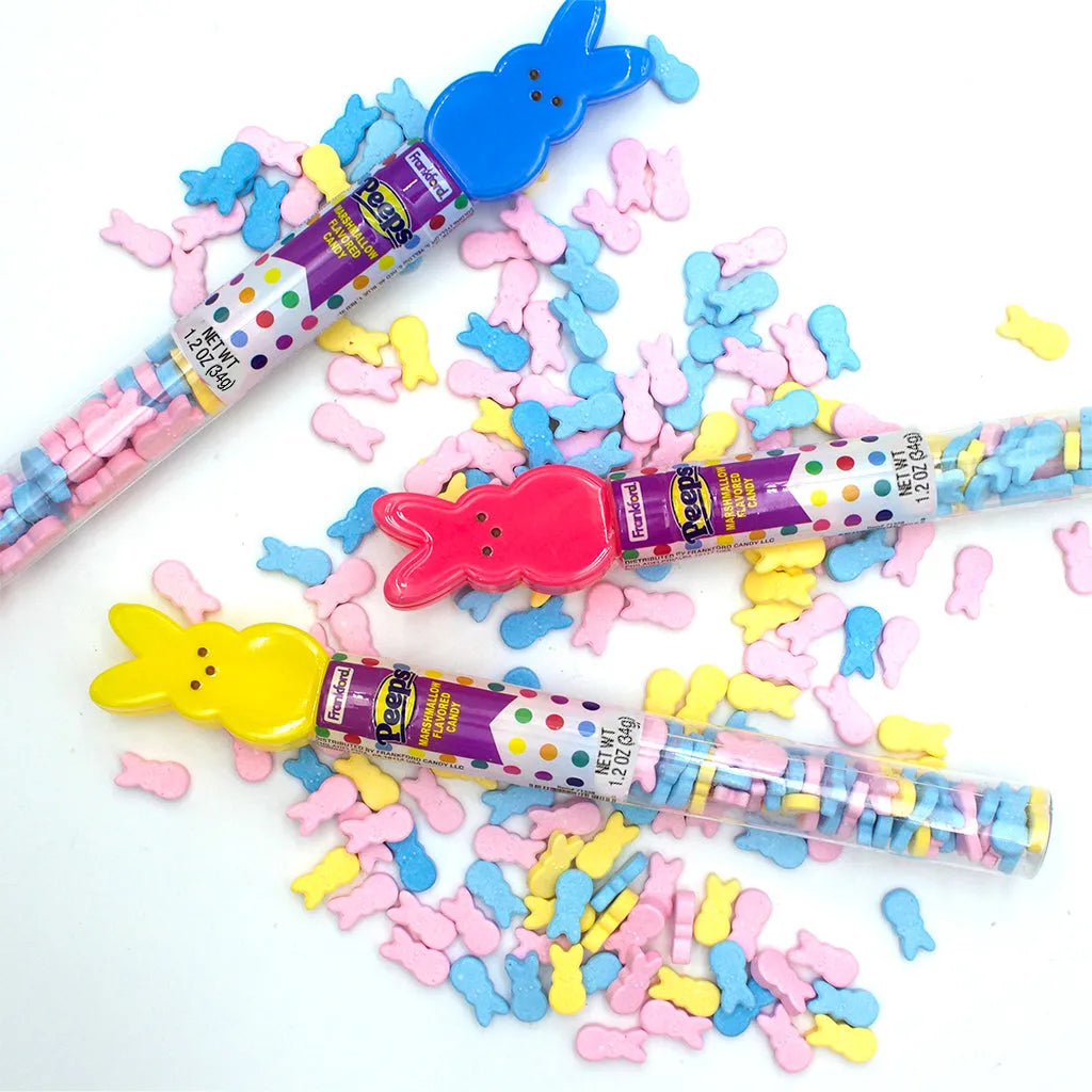 Hop into Easter fun with the PEEPS Bunny Topper with Candy! Each festive tube is filled with marshmallow-flavored hard candy and topped with an adorable PEEPS bunny figurine in an assortment of Blue, Pink, and Yellow. A must-have for PEEPS fans, this candy tube makes an egg-cellent Easter basket stuffer, party favor, or festive treat.