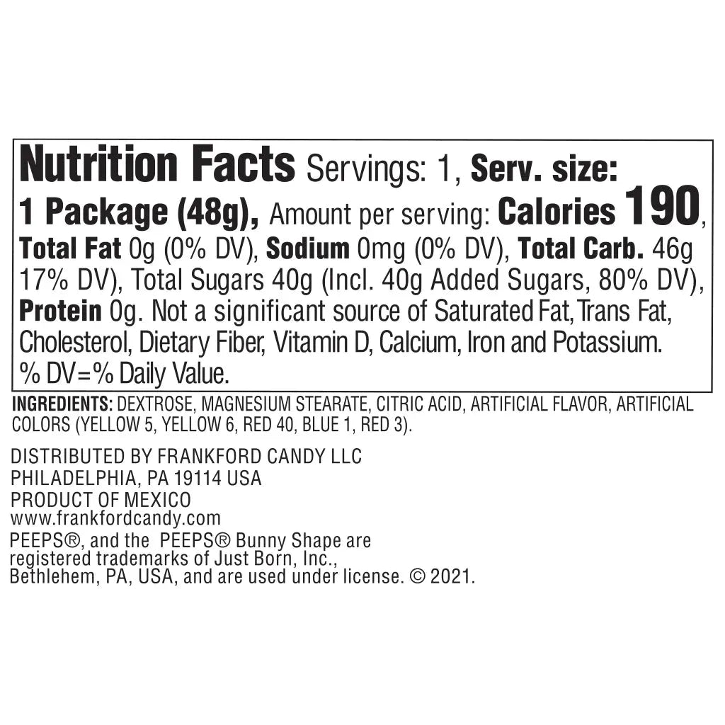 Display contains 12 Peeps Bunny Topper with Candy, each with a net weight of 1.2 ounces.