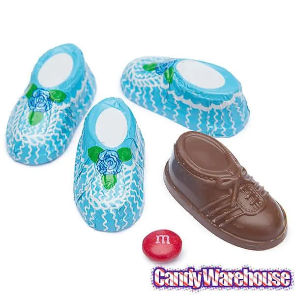 Wrapped in Italian foil featuring a blue crocheted pattern, these cute and delicious deluxe milk chocolate baby booties will fit snugly into your mouth while you celebrate the arrival of your bundle of joy at your baby shower!