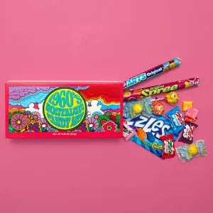 Turn up the nostalgia with the 1960’s Decade Candy Box, a groovy collection packed with some of the most iconic treats of the swingin’ sixties! This 9.25 oz box features a delicious assortment of retro candy favorites like Sweetarts®, Chupa Chups® Pop, Lemonhead®, Razzles®, Starburst®, Zotz®, and Original Spree®. Dressed in vibrant 1960s-themed graphics and sprinkled with hidden fun facts, it’s a sweet blast from the past that’s perfect for gifting or party décor.