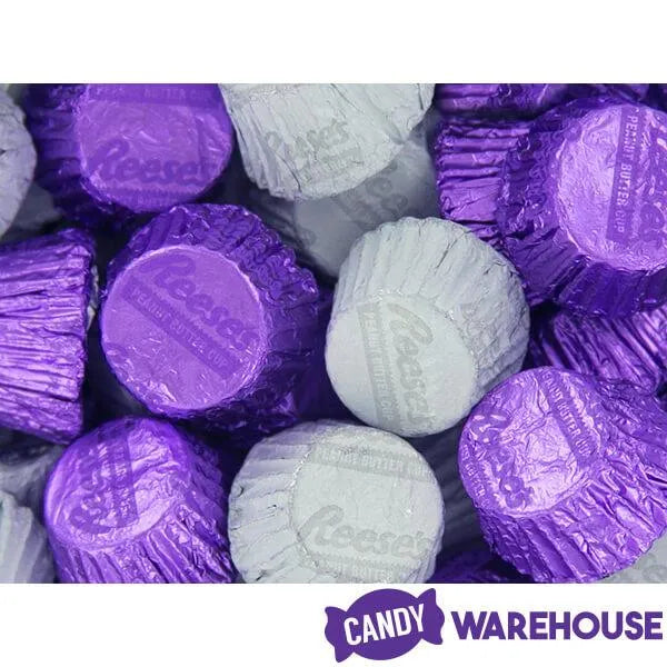 Box contains 400 pieces of Purple Foiled and White Foiled Reese's Peanut Butter Cups Candy packed in two bags, each with a net weight of 66.7 ounces.