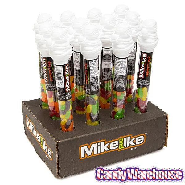 Display box contains 12 Mike and Ike Mummy Mix Candy Tube Toppers.