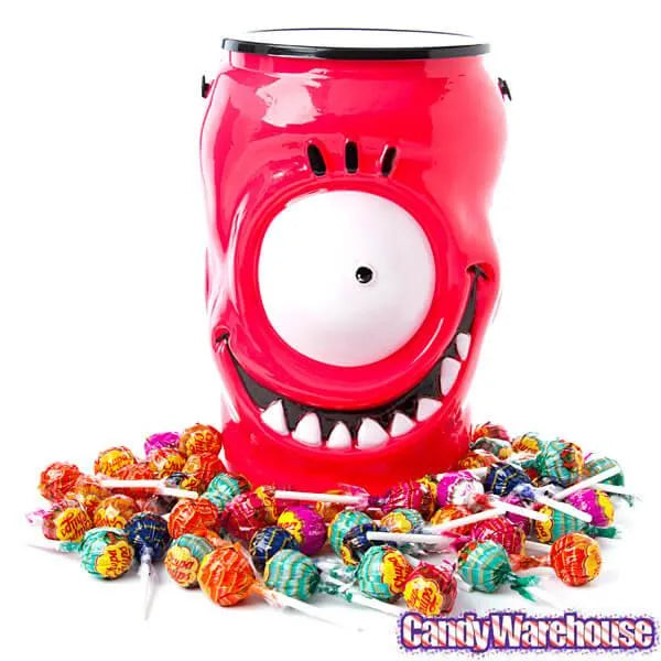 Meet the friendly Chupa Chups monster of Chupaville...he's wild for delicious lollipops! Pop open the top of these awesome one-eyed monster-shaped containers to reveal a yummy heap of Chupa Chups lollipops. Filled with delectable red, blue, and green suckers, a friendly translucent monster head smiles gap-toothed at trick-or-treaters with a huge, unblinking eye. Frightfully fun, this set of sweet-filled Halloween decorations will have you smiling for all the Halloween nights to come. Proof that sweet and juicy things come in big, crazy packages!