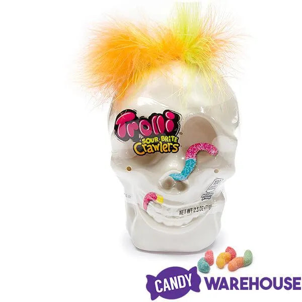 Halloween skull contains 2.5 ounces of Trolli Sour Brite Crawlers Gummy Worms.