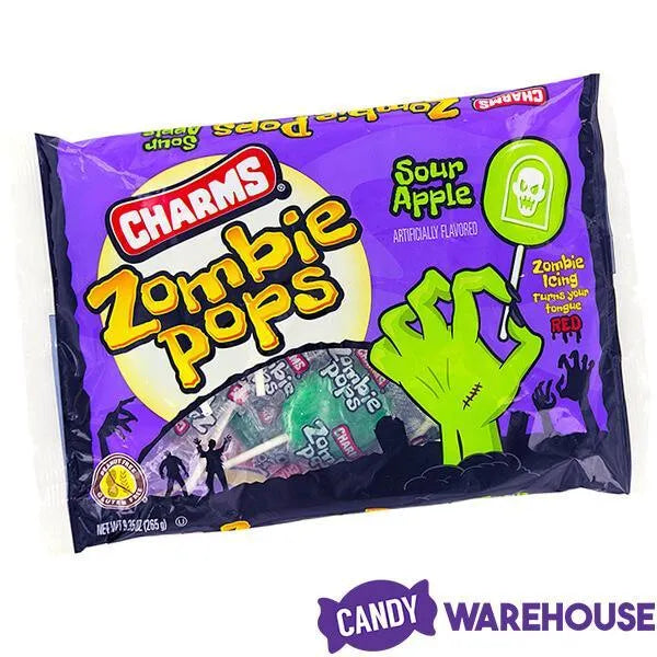 Discover how delicious a zombie candy apocalypse can be with every lick of Charms Zombie Pops! Featuring an eerie green color and a yummy sour apple flavor, these fun Halloween candy delights are sure to a popular item with trick-or-treaters and Halloween party guests alike. Stock your candy bowl with Zombie Pops and keep the hordes happy with the perfect balance of sour and sweet!