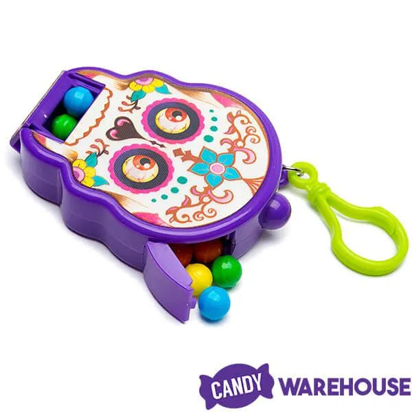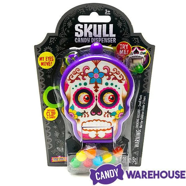 Inspired by the skulls that adorn Day of the Dead festivities throughout Mexico, this colorful skull candy container also makes a delightfully scary addition to your Halloween candy offerings. This eye-catching peg blister package contains delicious candy pieces and the bulging eyeball skull container, which has a clip for attaching to belt loops or backpacks. Spooky and fun, this Day of the Dead Skull Candy Dispenser will make your Día de Muertos holiday celebration the best yet!