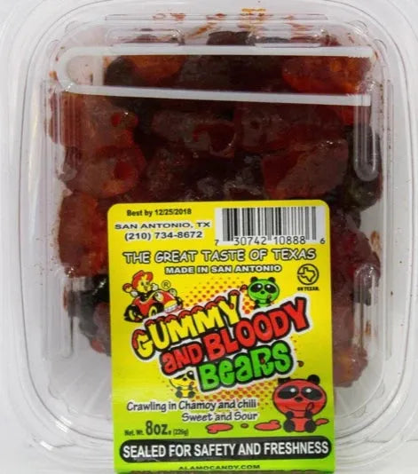 Grab your tub of Alamo Candy's Gummy & Bloody Bears today and savor the perfect blend of sweet and spicy!