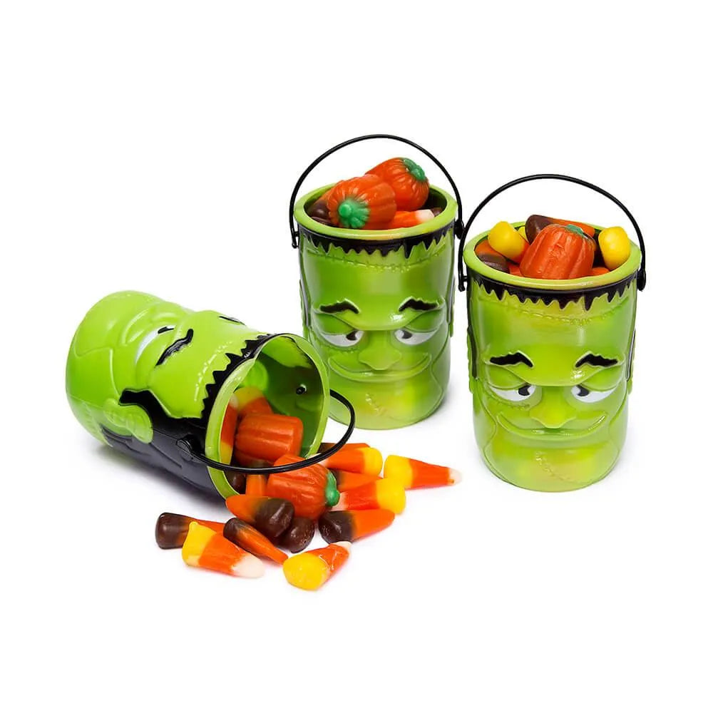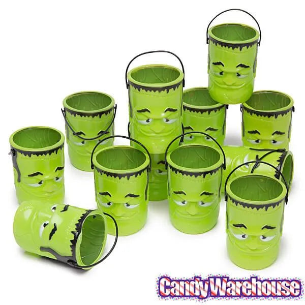 Plastic Mini Green Monster Pails with Handles: 12-Piece Set