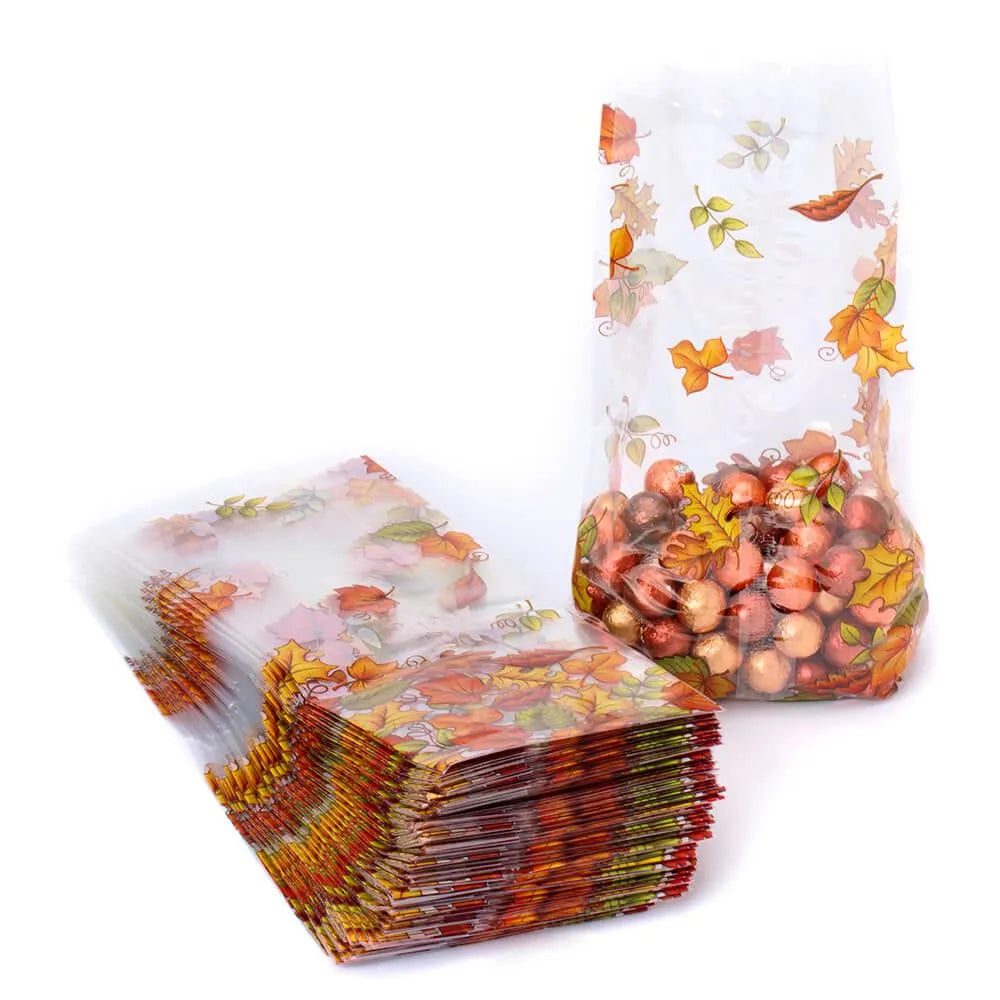 Clear Cello Candy Bags with Autumn Leaves: 100-Piece Box