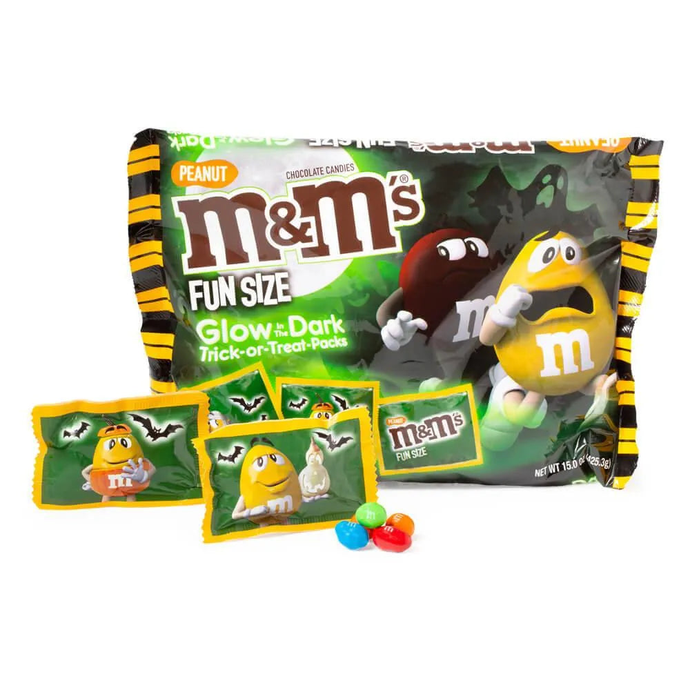 Glow in the Dark Halloween Peanut M&M's Candy Fun Size Packs: 15-Ounce Bag